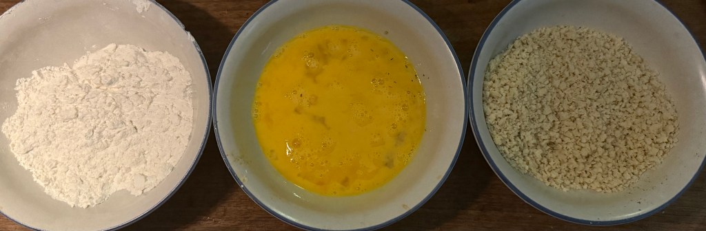 3. Set up a breading station with three shallow bowls: one with flour, one with beaten eggs, and one with panko breadcrumbs mixed with Italian herbs, salt, and pepper.
