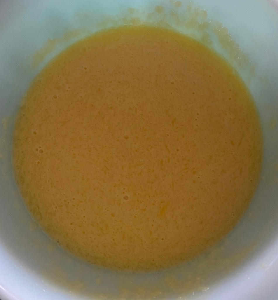 3. In a separate bowl, combine the melted butter, eggs, milk, and almond extract. Mix until well combined.