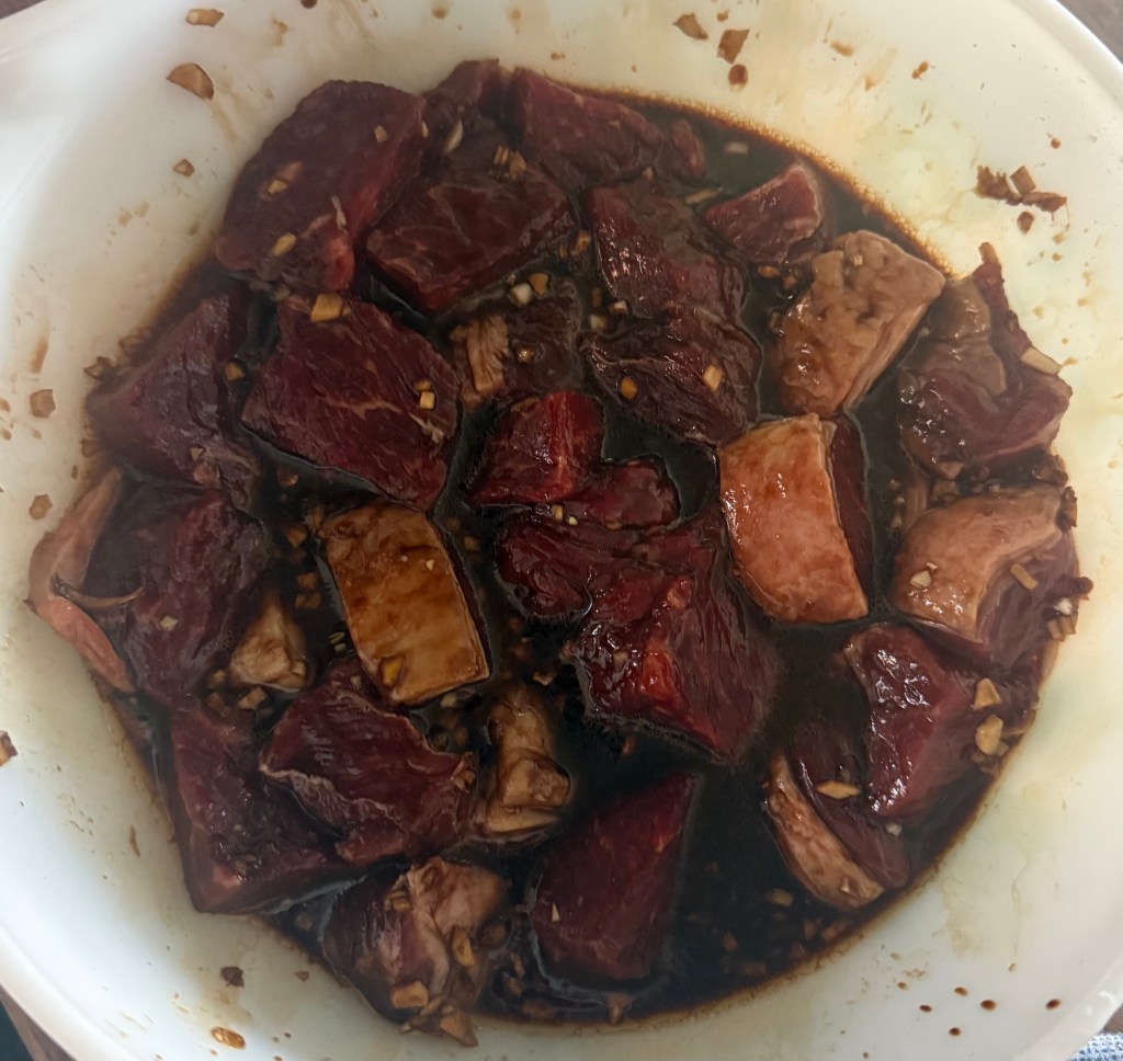 2. Place the beef cubes in a resealable plastic bag or shallow dish, and pour the marinade over the beef. Seal the bag or cover the dish and marinate in the refrigerator for at least 1 hour (up to overnight for more flavor).