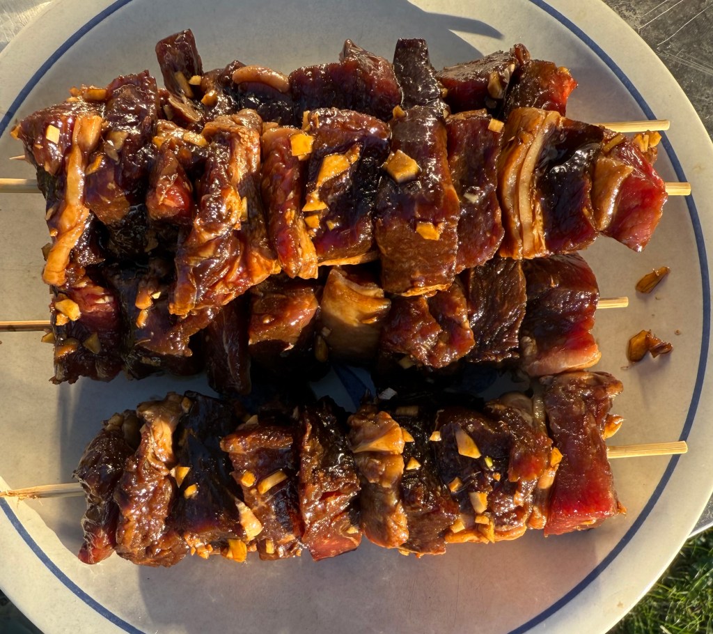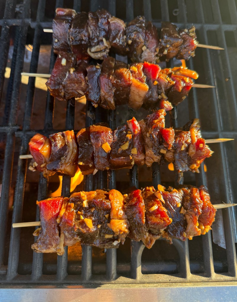 5. Grill the skewers for about 8-10 minutes, turning occasionally, until the beef is cooked to your desired doneness.