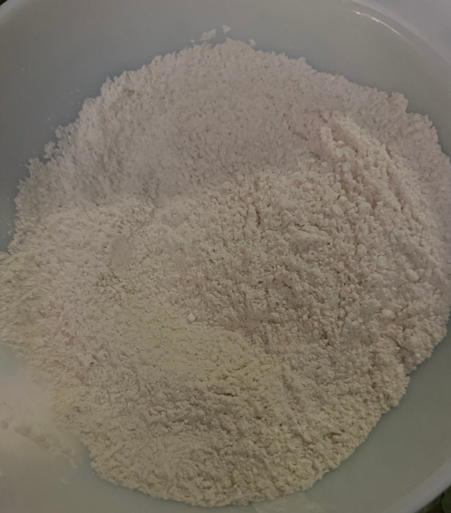 2. In a large mixing bowl, whisk together the flour, granulated sugar, baking powder, baking soda, salt, and shredded coconut.