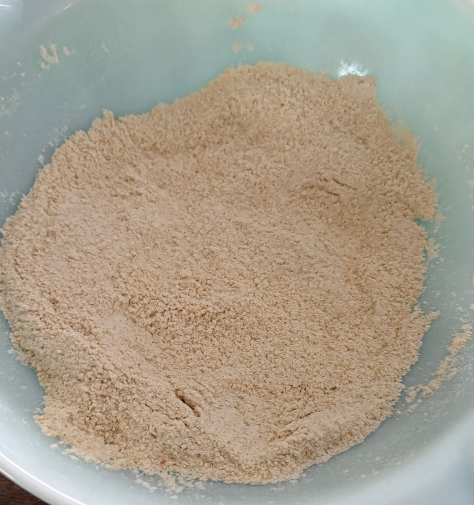 3. Add the cold butter pieces to the dry ingredients and use a pastry cutter or your fingers to work the butter into the mixture until it resembles coarse crumbs.