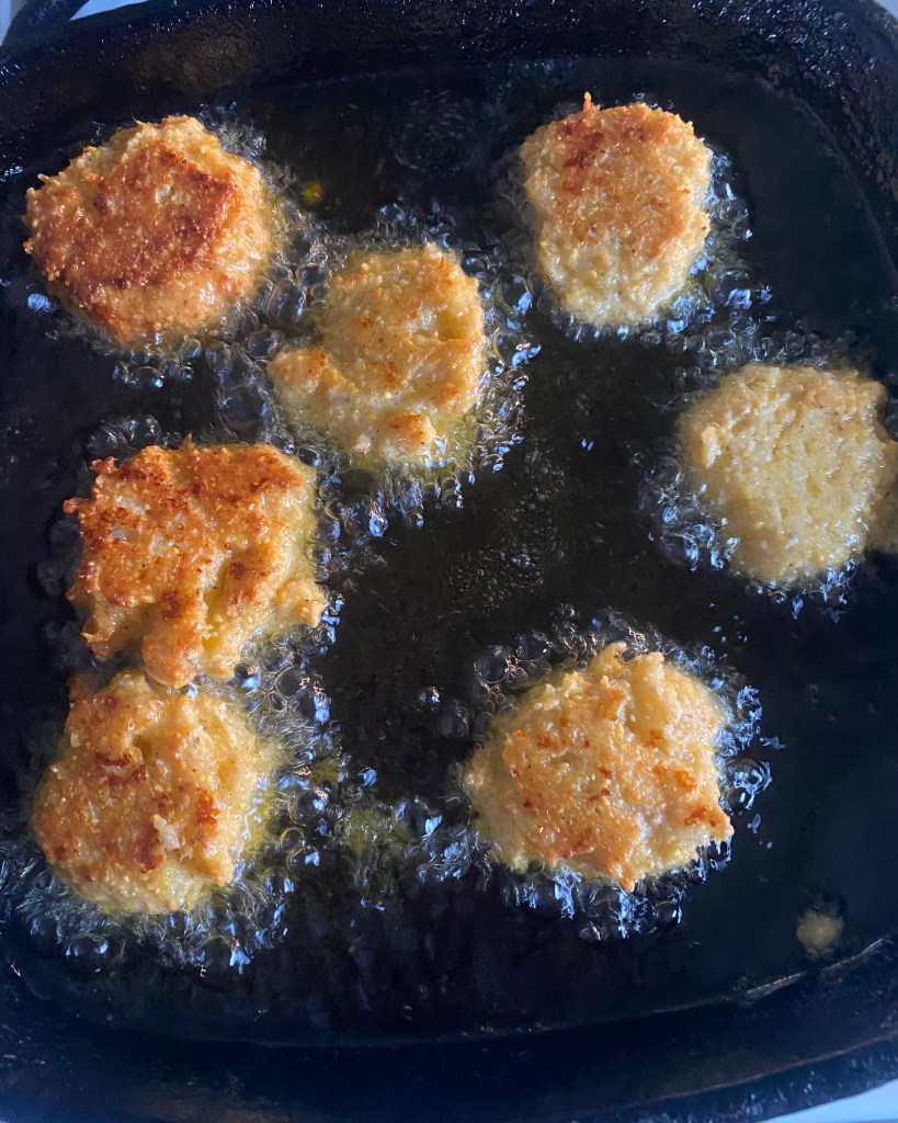 8. Carefully add the cheese balls to the hot oil in batches, frying for about 3-4 minutes on each side, or until golden brown and crispy.