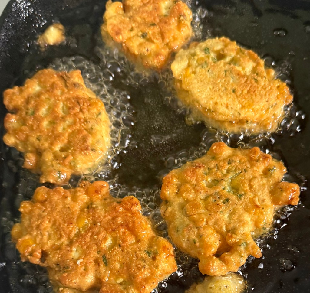 7. Once cooked, transfer the fritters to a paper towel-lined plate to drain excess oil.