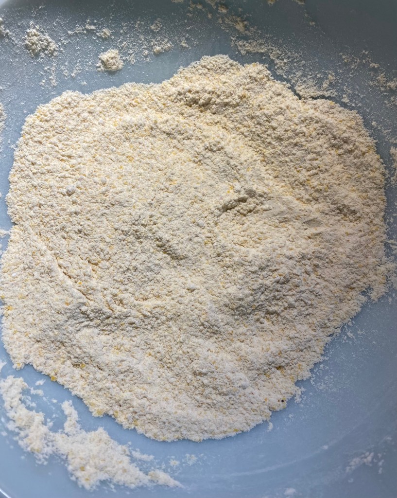 2. In a mixing bowl, combine the flour, cornmeal, baking powder, salt, garlic powder, and onion powder (if using).