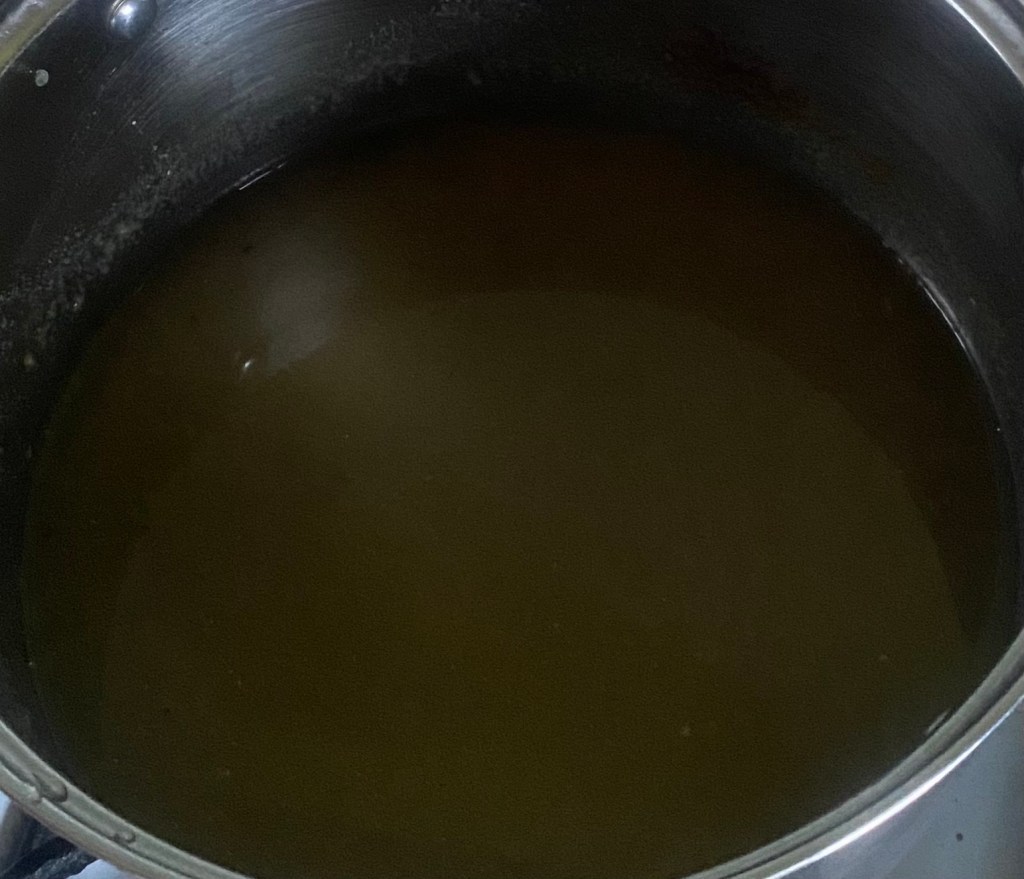 9. Remove from heat and skim off any foam that may have formed on the surface.