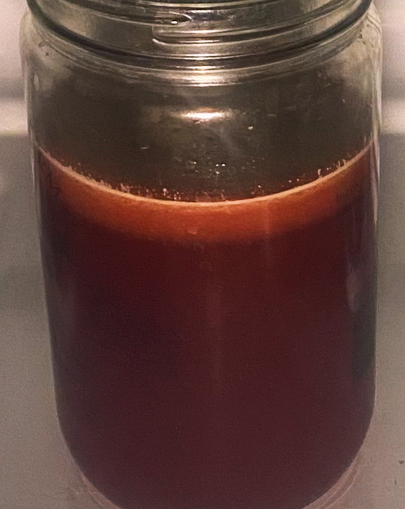 4. Pour the shrub into a clean glass jar or bottle and seal it tightly.