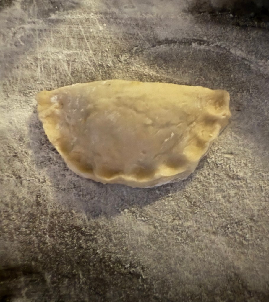 4. Fold the dough over the filling to create a half-moon shape. Pinch the edges to seal tightly, making sure there are no gaps. You can pleat the edges for a decorative look.