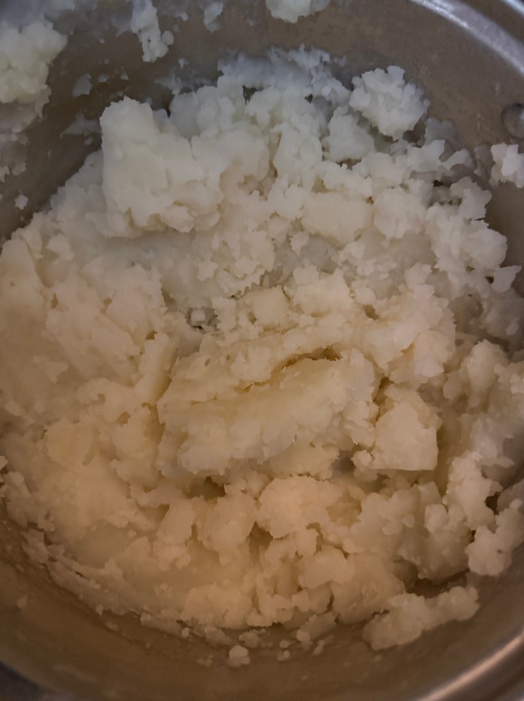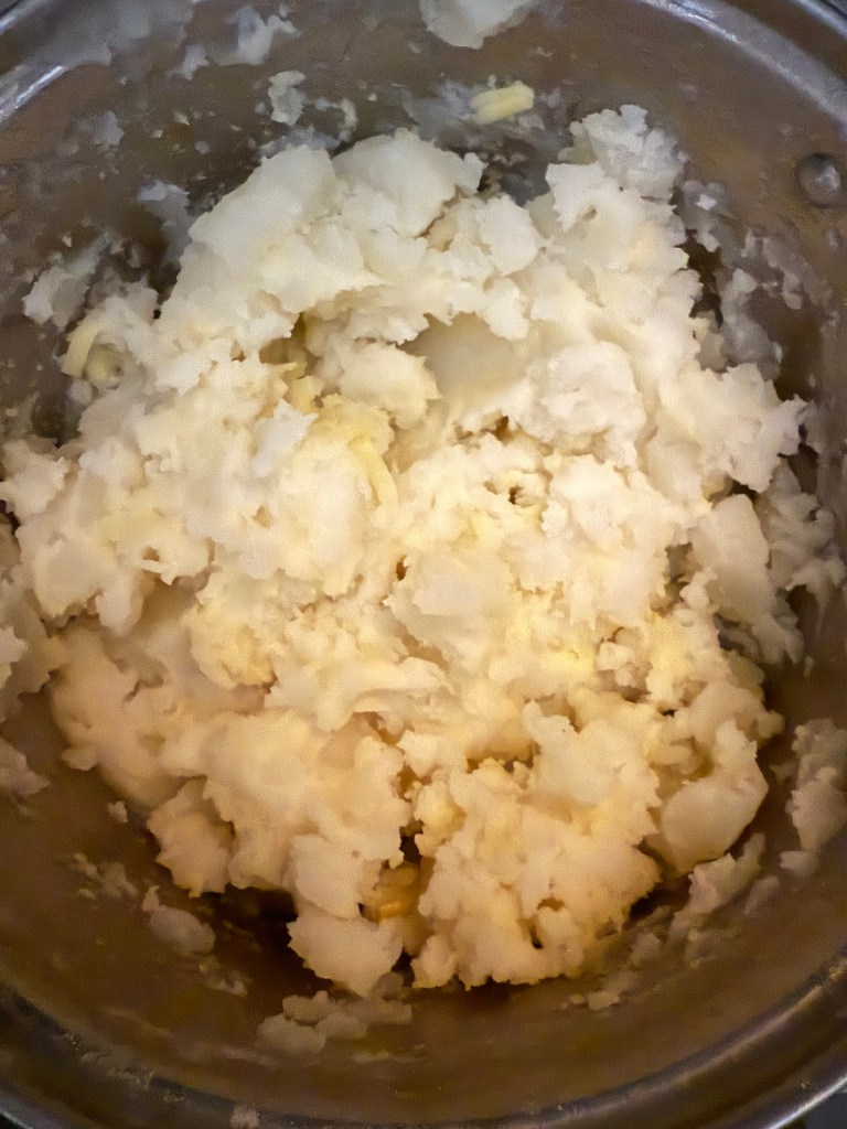 - Boil the potatoes and mash to smooth. Don’t overwork or they will get gummy