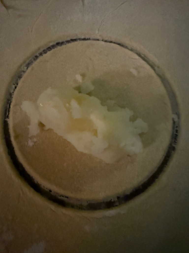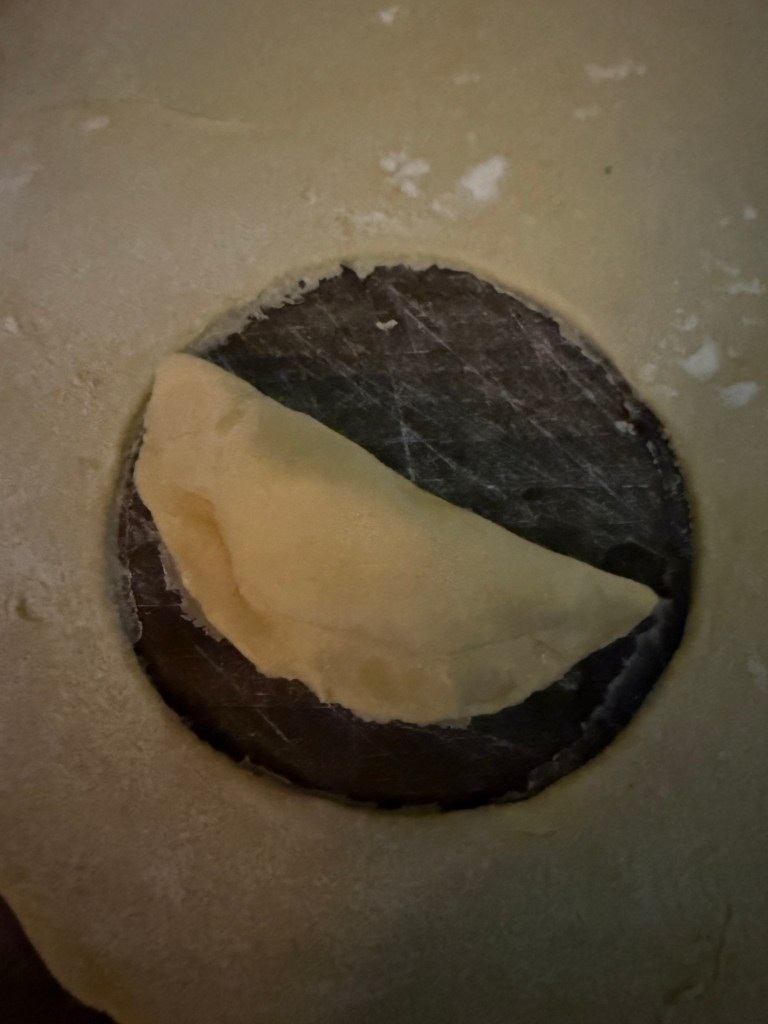 - Using a fingertip dabbed in water, swiped along the edge of the dough and fold it over the potato mixture, squishing the edges together to seal