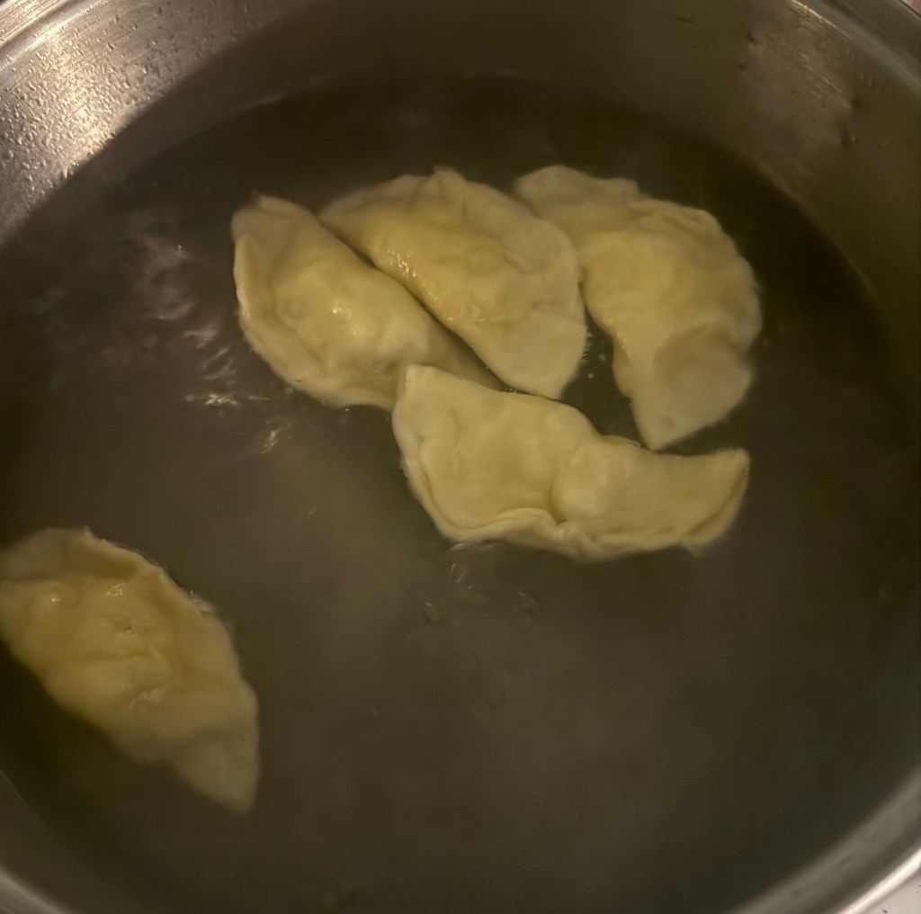 - Gently drop the pierogies into the water. When they float to top, lift them out with a slotted spoon and into a bowl.