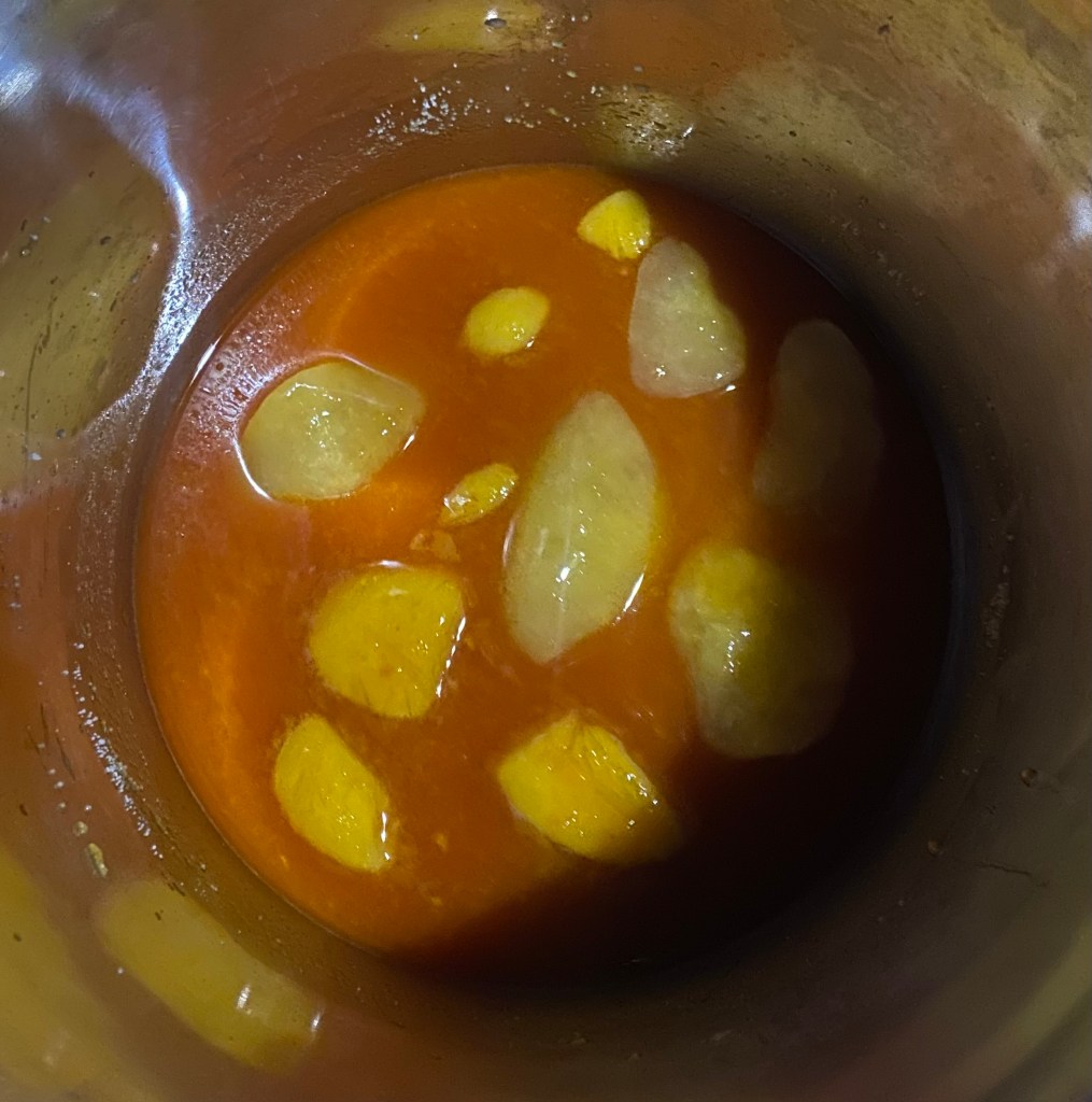 - Next add the lye to the frozen orange juice little by little while gently stirring. You should do this in a WELL VENTILATED area and wear protective SAFETY GLASSES and GLOVES! Always add the lye to the orange juice. If you add the orange juice to the lye it can explode and cause burns. Keep vinegar on hand to rinse your skin immediately in case of lye burns.