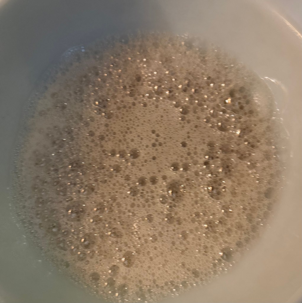 2. Pour 1/2 cup of the cooled marshmallow root infusion into a large mixing bowl. Sprinkle the gelatin over the surface and let it sit for a few minutes to bloom.