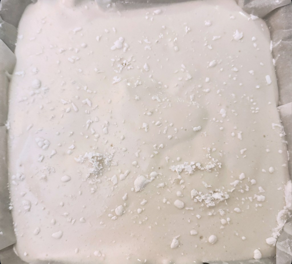 6. Lightly grease an 8×8-inch pan or baking dish and dust with a mixture of powdered sugar and tapioca flour. Spread the marshmallow mixture evenly in the prepared pan using a spatula. Dust the top with more powdered sugar and arrowroot powder mix. Let the marshmallows set at room temperature for at least 4 hours or overnight.