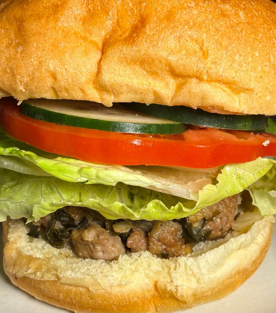 5. Toast the burger buns if desired. Place the cooked wakame burger patty on the bun and top with lettuce, tomato, cucumber, and your choice of toppings and sauces.
